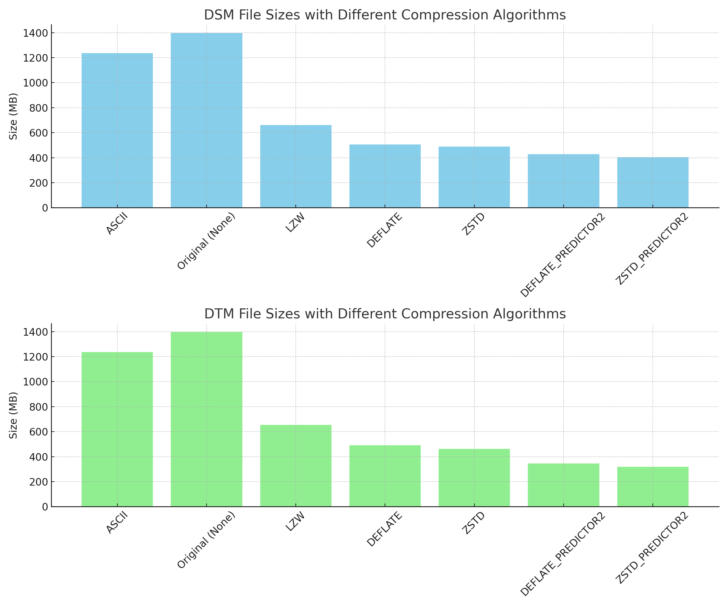 TL;DR: compression, in the case of these LiDAR data, can make the data 1/3 of the size with no loss of resolution.